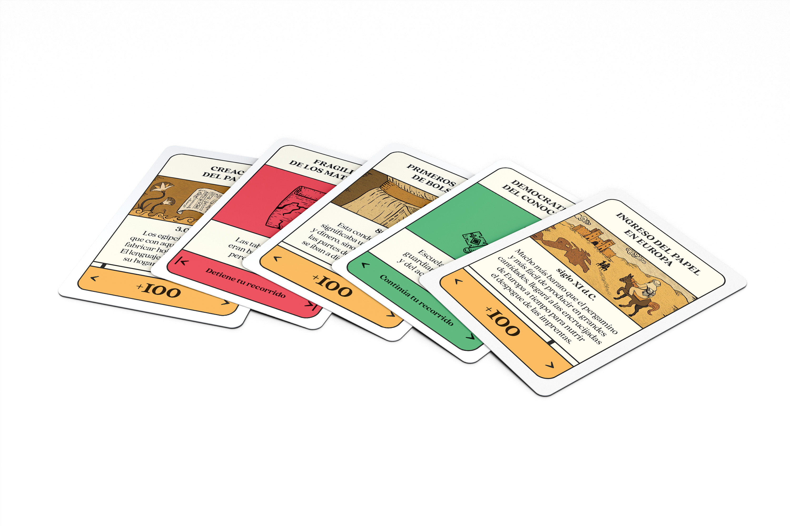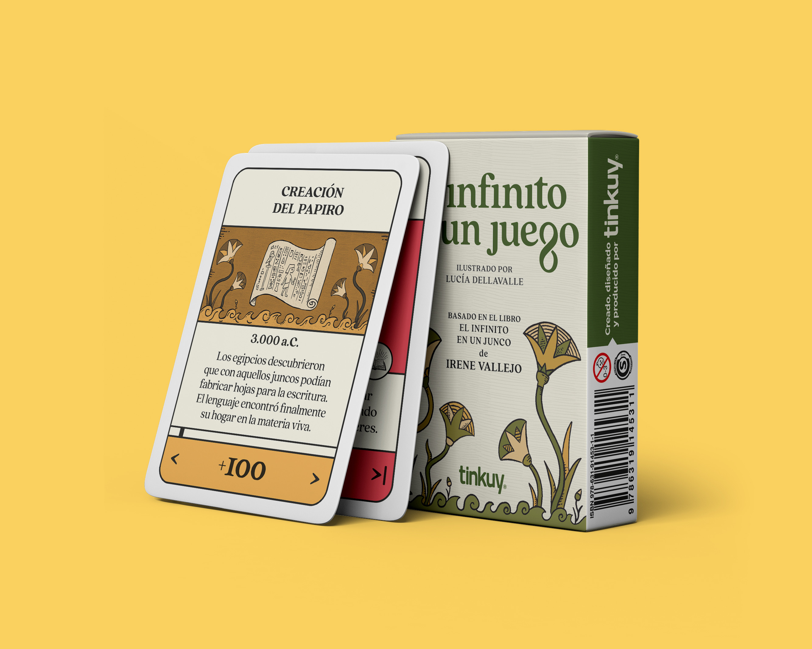 El juego invita a descubrir momentos clave vinculados a la historia del libro. Se inspira en la lectura de El infinito en un junco, obra de la autora española Irene Vallejo, una celebración de la palabra que traza un recorrido cronológico por las formas que encontró la humanidad para preservar las historias a lo largo del tiempo. Además de avances y progresos, se incluyen los obstáculos que debieron superarse para que hoy disfrutemos de este maravilloso artefacto. Los contratiempos no destruyen el camino, lo hacen posible. Cada obstáculo —material, político o simbólico— es también un impulso para reinventar la escritura, para encontrar nuevas formas de compartirla.Objetivo: Emprender un viaje por la historia del libro y sumar la mayor cantidad de puntos agregando cartas de acontecimientos al recorrido. Pero... ¡cuidado! También deberás superar los contratiempos que se presenten a lo largo del camino. El mazo contiene 50 cartas: 30 acontecimientos: Hitos o eventos en la historia del libro. Permiten sumar puntos en el viaje de cada jugador. 9 contratiempos: Situaciones que detienen el avance del conocimiento. Se utilizan para interrumpir el viaje de otros jugadores. 9 soluciones: Eventos que resuelven los contratiempos. Se utilizan para continuar el viaje cuando otro jugador lo interrumpe. 2 inmunidades: Protegen el recorrido ante un eventual contratiempo. Dan inmunidad durante una ronda o hasta colocar un nuevo acontecimiento.